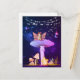 Tarjeta postal de Fantasía de Hongo con una hada y un ratón adorable.