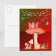 Tarjeta postal de fantasía de hongos con una hada y un ratón lindo.