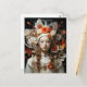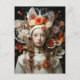 Una hermosa mujer vestida de blanco con mariposas naranjas y flores de IA generó arte