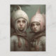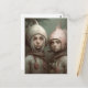 Un diseño de fantasía de dos niños extraños con gorras de pescado que había pedido para una persona de parte de pescado y que fue dado por el generador de IA.