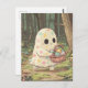 Un bonito fantasma de un punto polka lleva una canasta de huevos coloridos a través de la fantasía forestal de la IA el arte generado