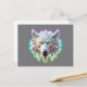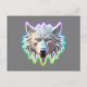 Una fantástica cabeza de lobo blanco con ojos perforantes dorados y un colorido resplandor halo. Personalízalo como quieras.