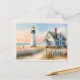Postal Faro costero y acuarela artesanal