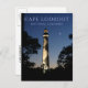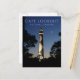El faro de Cape Lookout, enmarcado por siluetas de árboles, se eleva al cielo nocturno bajo una luna creciente en la costa nacional de Cape Lookout, Carolina del Norte.