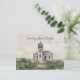 Saludos desde la tarjeta de bienvenida Bandon decorada con un faro inspirado en el faro del río Coquille que se encendió por primera vez en 1894 y el único edificio que quedó parado después de un incendio en 1936. Esbozo de mano con tinta y pintado con acuarela en tonos tierra de tonos verdes y cálidos de lavanda.