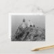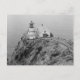Fotografía de época del faro Point Reyes encaramado sobre un acantilado costero en California.