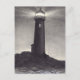 Faro de noche que brilla una luz de navegación ilustracion blanco y negro de un faro que brilla su haz de luz de navegación en una noche oscura por la seguridad de un barco que pasa por mares tormentosos cerca de la costa rocosa del océano. Copyright 1996 de Lee Serenethos con James Monahan.