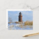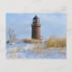 Postal Faro turbio en una costa rocosa en invierno