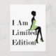 La cita dice "Soy edición limitada". Una silueta de una mujer de diseño que descansa sobre la cita completa la impresión de moda.