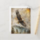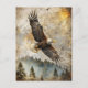 Esta postal presenta un águila calva impactante sobre un bosque de pinos maloliente con un fondo vintage, texturizado y acentos antiguos de escritura. Una elección perfecta para los entusiastas de la vida silvestre, los amantes de la naturaleza o los regalos de temática patriótica, este diseño simboliza la libertad, la fuerza y la belleza natural. Ideal para notas inspiradoras, periodismo o encuadernación como arte mural rústico.