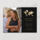 Estas elegantes y modernas bodas de destino, salvo las postales de fecha, cuentan con un sencillo diseño de textos en negro y oro falso que exuda estilo minimalista, con tu foto personal favorita. El diseño presenta un mapa del mundo con una imitación de oro ilustrado, y las palabras "reserve the ticket" con un fondo negro.