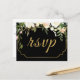 Postal Faux Gold Watercolor Floral Black Wedding RSVP