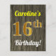Postal Faux Wood, Faux Gold 16th Birthday & Custom Name