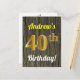 Postal Faux Wood, Faux Gold 40th Birthday & Custom Name