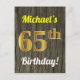 Postal Faux Wood, Faux Gold 65th Birthday & Custom Name