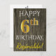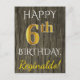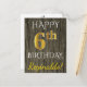 Postal Faux Wood, Faux Gold 6Cumpleaños + Custom Name