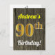 Postal Faux Wood, Faux Gold 90th Birthday & Custom Name