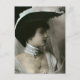 Fotografía de época de una joven con un enorme gorra curvo con decoración de plumas y un ahorrador de encajes