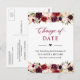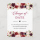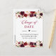 Postal Fecha de Boda Pospuesta Burgundy Rojo Floral Desva