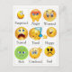Postcard with feelings emojis. We use these with our child to help recognise emotions & facial expressions. They're also used on a lanyard to tell others how the child feels. These seem to work more effectively than actual faces at a young age. The text can be edited so if you'd prefer a different colour, font or language that's possible.