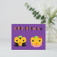Feliz postal de las calabazas de Halloween. La postal de personalizable tiene dos calabazas adorables disfrazadas de vampiros y princesas con un fondo morado y dice Feliz Halloween con letras naranjas y negras.