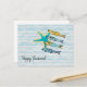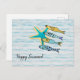 Envíe saludos de verano con este Feliz Verano! postal mostrando cuatro peces en el océano con una estrella de mar. Personalízalo. Excelente para posttravesía y recolección de postales. Arte de Indie Artist WindyDesign.