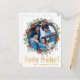 Este moderno y elegante diseño de tarjeta Navidad presenta una hermosa corona de flores, con un vibrante follaje rojo y verde y bayas, que le dan un toque festivo a su bienvenida de vacaciones. El mensaje "Happy Holidays" está escrito en una elegante caligrafía en oro falso, añadiendo un toque sofisticado y acogedor. Personalizar con su propia foto y su apellido para crear su propio saludo de Navidad único.