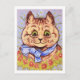 Postal de arte fino con un ilustracion animal de un naranja de ojos verdes, tabby cat, adornado con una guirnalda de flores de margarita y un arco azul, Happy Flower Cat, creada por el artista inglés Louis Wain (1860-1939). Wain fue un renombrado ilustrador durante la época de art noveau. Es celebrado por sus retratos de gatos distintivos y encantadores. Este retrato es característico de su estilo único y entrañable.