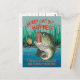 Una ilustración de dibujos animados de una lubina saltando fuera del agua, intentando morder un señuelo con el texto El dinero no puede comprar la felicidad, puede comprar mucho equipo de pesca, que básicamente es lo mismo.