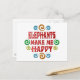 Un amante de los elefantes puede compartir su amor con este diseño muy colorido con espirales y palabras - Los elefantes me hacen feliz. Es un gran regalo.