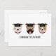 Ilustración de tres cachorros de Bulldog Francés con gorras de graduación.
