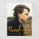 Sencilla tipografía de agradecimiento en falso oro con foto completa en el frente, y un dulce mensaje de agradecimiento con una estrella de David y dirección de remite en la parte posterior de la postal.