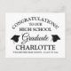 Felicitaciones a nuestras elegantes postales de invitación de Graduación de personalizado de grado. Texto negro completamente personalizable, fondo plano blanco sólido. Con dos tapones de graduación. Tipografía moderna y elegante, ideal para niños y adultos. Personalizable para jardines de infancia, escuela primaria, escuela media, escuela secundaria y universidad.