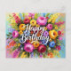 Felicidades de cumpleaños, diseño floral colorido.