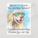 Tarjeta de felicitación de jubilación linda y moderna con un golden retriever divertido en una playa tropical. Diseño original creado a partir de una de nuestras acuarelas pintadas a mano.