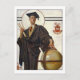 La imagen de un graduado con gorra y vestido de pie al lado de un globo es "Graduado" hecho en 1920 por el artista estadounidense Joseph Christian Leyendecker (1874-1951). Es nuestra serie Bella Artes número 30.