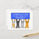 Cuatro gatitos personalizados de diferentes colores sostienen un cartel azul que dice 'Felicitaciones por entrar a la universidad'.