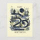 Colores suaves, verde, azul y crema. Los dibujos son elementos que forman una composición con el número 20, rodeado de estrellas , hojas y pequeñas flores, con un estilo moderno.