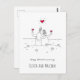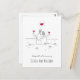 Esposa y marido de mediana edad están sentados en la orilla del mar sosteniendo vasos de vino en sus manos. Están viendo la puesta de sol, y el sol toma la forma de un corazón brillante para este feliz momento de su 40 aniversario de boda. El diseño de la tarjeta está hecho en una técnica de escritura y de caricatura de tinta muy simple con los tres puntos rojos: corazón y dos vasos de vino. ¡Gran tarjeta para el aniversario del Boda Ruby! Puede personalizar fácilmente el texto (saludos y nombres) en la parte inferior de la tarjeta utilizando herramientas de personalización de Zazzle.