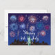 Específicos y únicos fuegos artificiales en rojo, blanco y azul con la Estatua de la Libertad en una silueta de la ciudad de Nueva York para celebrar el Día de la Independencia. ¡Feliz 4 de julio!