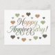Postal Feliz Aniversario Corazones Verdes Marrones Rústic