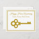 Esta tarjeta postal de agente inmobiliario chic está hecha a medida con su compañía de bienes raíces bajo el negocio de la propiedad inmobiliaria en tipografía dorada. Una hermosa llave dorada antigua añade un toque clásico a esta elegante tarjeta postal de Feliz Aniversario de Hogar.