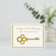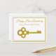 Esta tarjeta postal de agente inmobiliario chic está hecha a medida con su compañía de bienes raíces bajo la empresa de bienes raíces en tipografía dorada. Una hermosa llave dorada antigua añade un toque clásico a esta elegante tarjeta postal de Feliz Aniversario de Hogar Feliz.