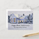 Esta hermosa tarjeta de Feliz Aniversario de Hogar es perfecta para una empresa inmobiliaria ubicada en el norte. La impresionante nieve blanca cubre los árboles y la casa en esta fotografía invernal. Un agente inmobiliario puede personalizar la parte frontal y trasera con su información de contacto comercial.