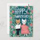 Postal Feliz Aniversario Pareja Perfecta Gatos Floral