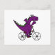 Postal Feliz Bicicleta de Dinosaurio Púrpura
