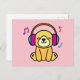 Postal Feliz cachorro de perro bebé sonriente con auricul