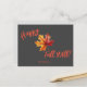 El clima se está enfriando y es momento de romper todo el picazón de calabaza. ¡Es Fall Y'All! Celebre la temporada de otoño con este diseño, con una hoja de arce naranja en un fondo gris. ¿Tienes clientes que te gustaría recordar algo cuando llegue la nueva temporada? Tal vez necesiten que sus sistemas de rociadores se laven, que sus calentadores se revisen antes de que el clima frío se ponga en marcha, o tal vez tengan que programar un examen ocular o dental. Envíenles un recordatorio con esta postal festiva. Rellene la línea inferior con cualquier recordatorio que necesite enviarlos.