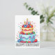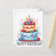 Esta tarjeta postal única presenta una colorida ilustración de un delicioso pastel de cumpleaños. Esta tarjeta postal sería un saludo de cumpleaños verdaderamente maravilloso para amigos, familiares y compañeros de trabajo.