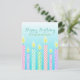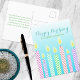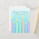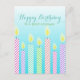 Celebre el día especial de su empleado con nuestro diseño de tarjeta postal de cumpleaños personalizada. La tarjeta postal presenta encantadoras velas a rayas ilustradas sobre un fondo azul gradiente, y el texto "Feliz cumpleaños a un gran empleado" escrito en dos fuentes modernas y elegantes. Con el mensaje en la parte posterior de la tarjeta postal totalmente personalizable, puede hacer que esta tarjeta sea tan única y personal como su empleado. Envíe sus mejores deseos de cumpleaños y hágales saber cuánto valora su arduo trabajo y dedicación.